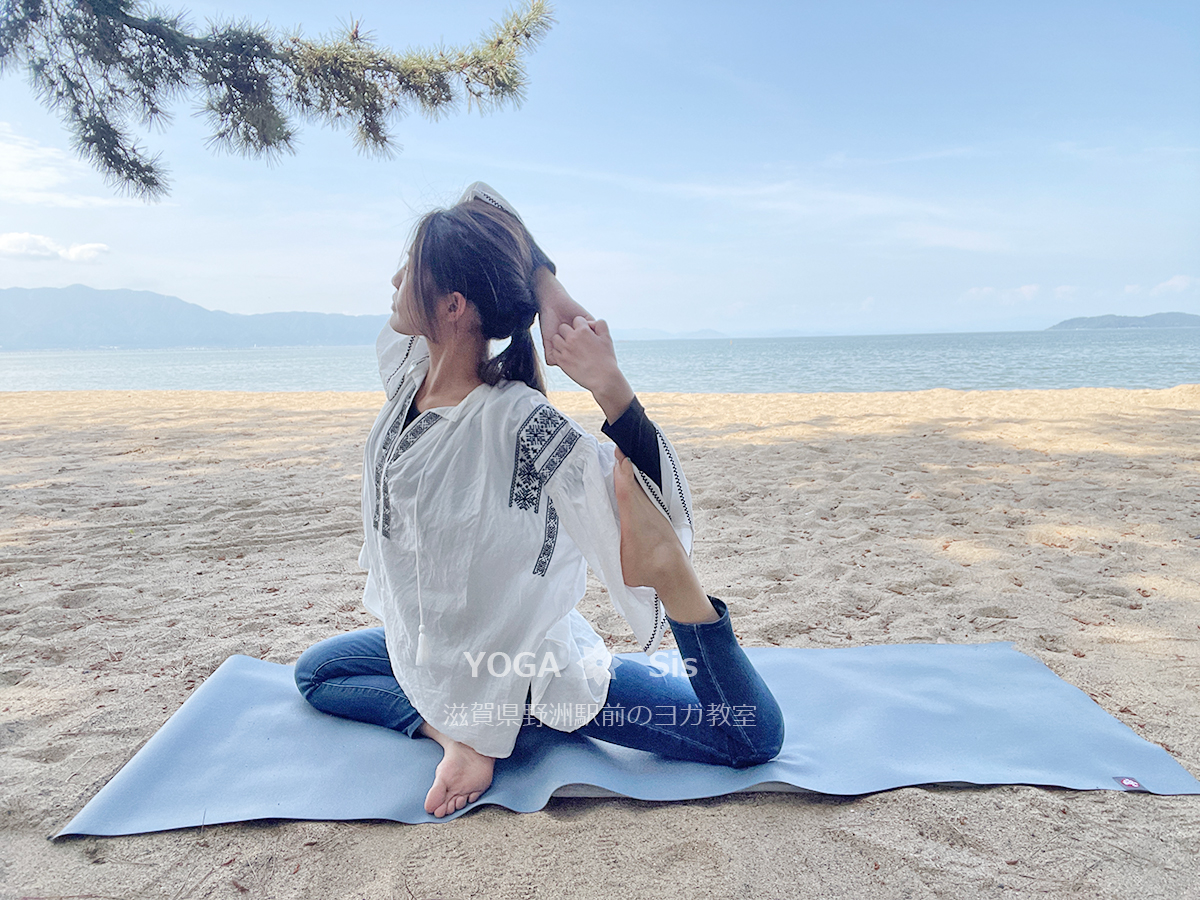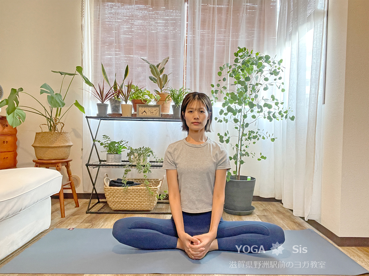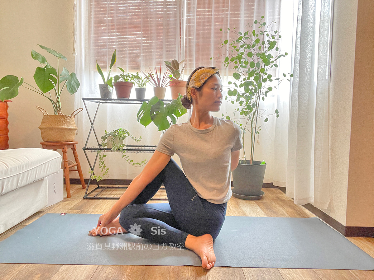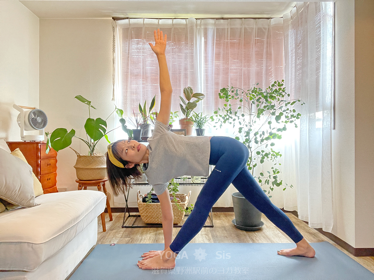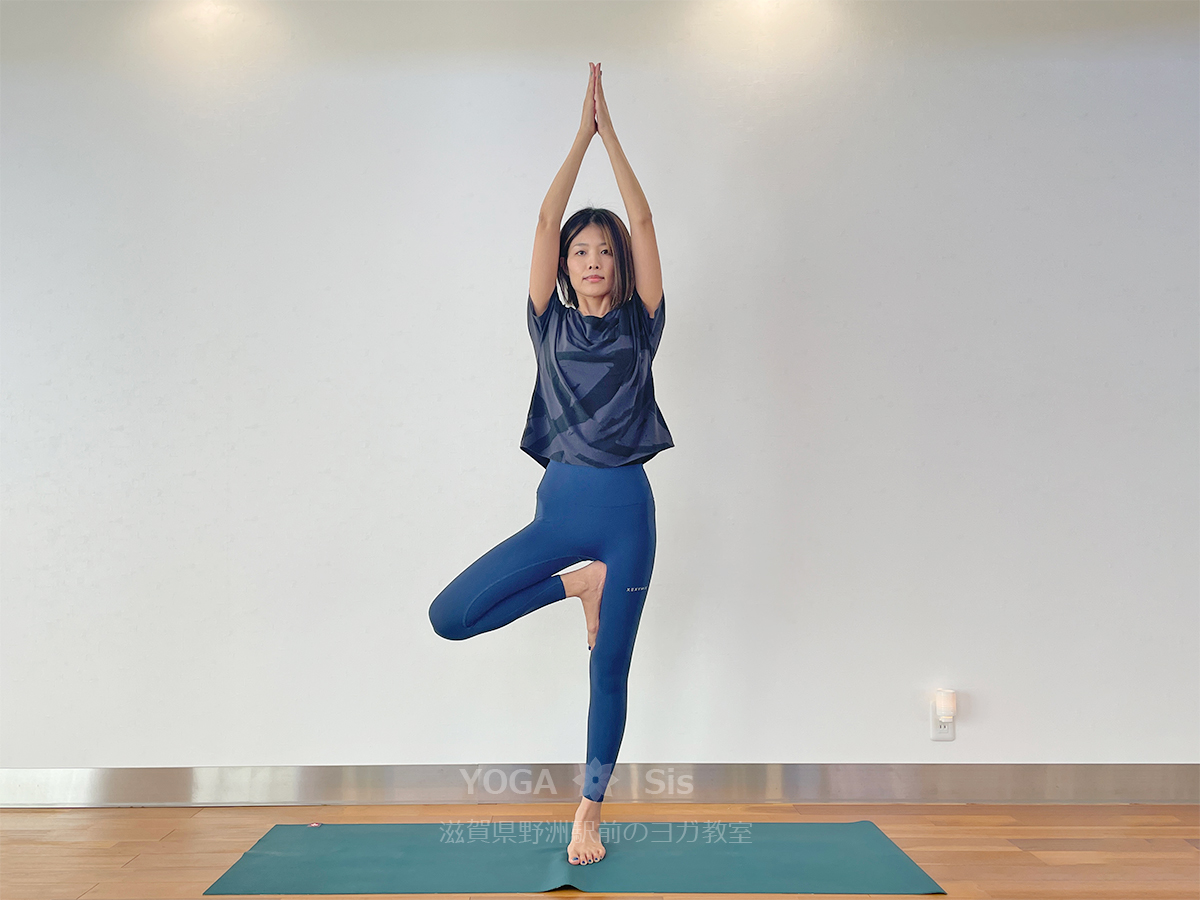 ここでは吸う息でポーズをとっていますが、レッスンテーマによっては吐く息でポーズをとることもあります。