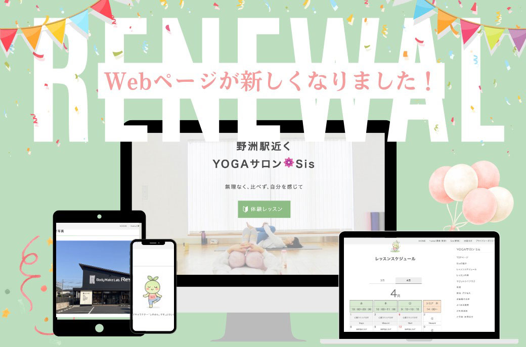 News SisのWEBサイトが新しくなりました! この度、YOGAサロン SisのWEBサイトをリニューアルしました!URLの変更リニューアルに伴い、URLも変更となりましたので、Bookマークやお気に入りに登録されている方は、設定変更をお願いいたし... 2026.03.22 News